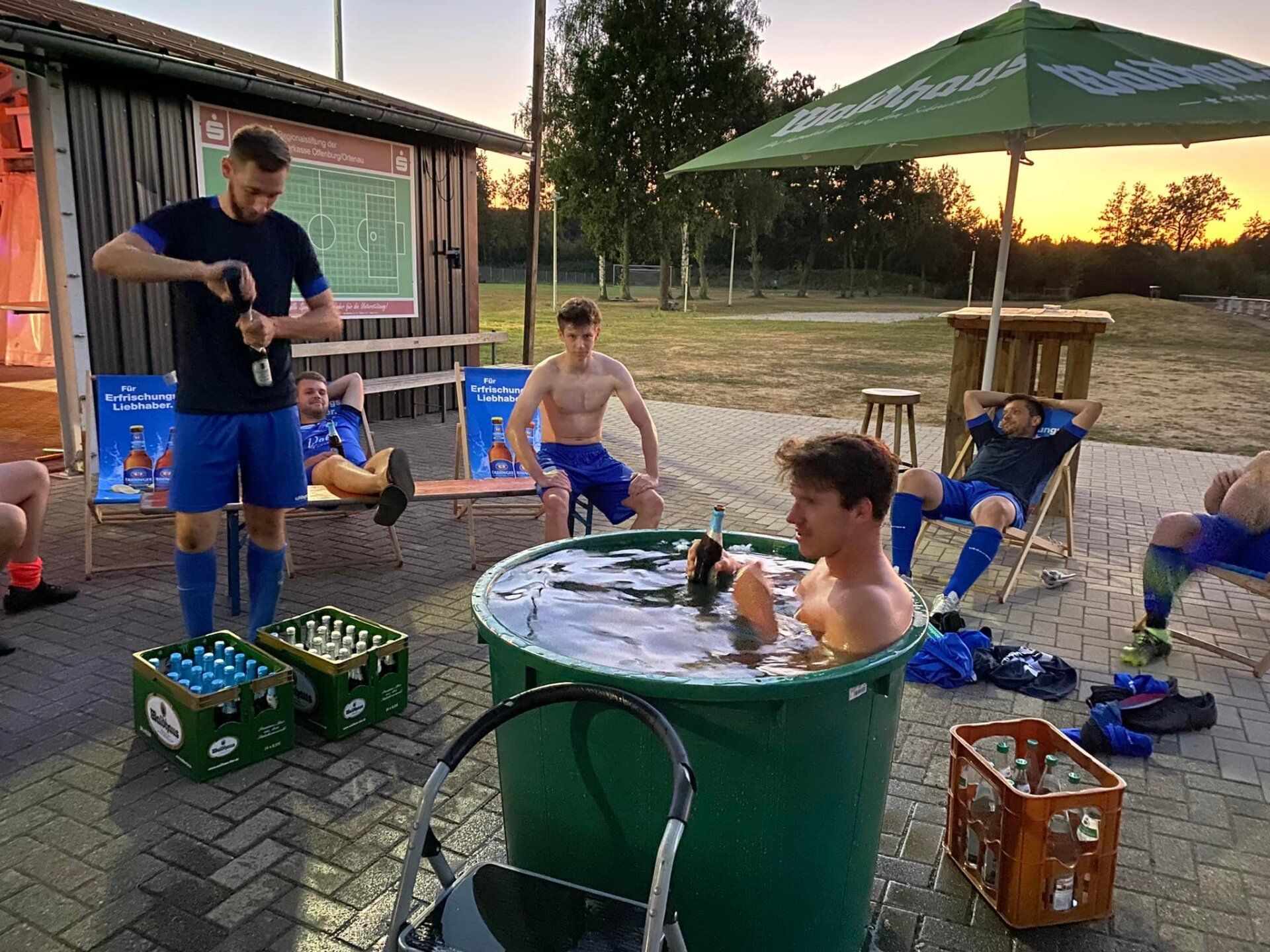 Nachdem die SVA Herren gegen die A-Junioren testeten und zeitgleich die Damen ein Testspiel absolvierten, feierten alle drei Mannschaften danach zusammen auf dem Sportgelände des SVA. Bis in die späten Abendstunden gab es kühle Getränke und Pizza für alle. Für die nötige Abkühlung nach den Trainingseinheiten ging es für den ein oder andere noch in die Eistonne.
