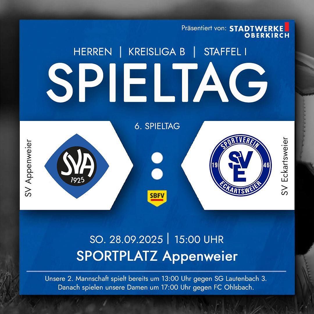 Heute erwartet euch nicht nur bestes Fußballwetter, sondern auch spannende Spiele und ein rundum tolles Programm. Für das leibliche Wohl ist selbstverständlich bestens gesorgt. Der Fußballtag startet bereits um 11:00 Uhr mit dem Spiel unserer A-Jugend. Um 13:00 Uhr trifft dann unsere 2. Mannschaft auf die dritte Mannschaft der SG Lautenbach/Ödsbach. Das Highlight folgt um 15:00 Uhr: Im Topspiel der Herren empfängt der SVA den SV Eckartsweier. Unsere Jungs wollen die Tabellenführung verteidigen und setzen alles auf drei Punkte. Trainer Onur Coban kann dabei nach personellen Engpässen wieder auf mehr Spieler zurückgreifen wichtig für dieses Duell! Zum Abschluss des Tages bestreiten unsere Damen ihr zweites Pflichtspiel gegen den FC Ohlsbach. Kommt vorbei, unterstützt unsere Teams und verbringt gemeinsam mit uns einen großartigen Fußball-Sonntag in Appenweier! Der heutige Tag wird präsentiert von Stadtwerke Oberkirch GmbH