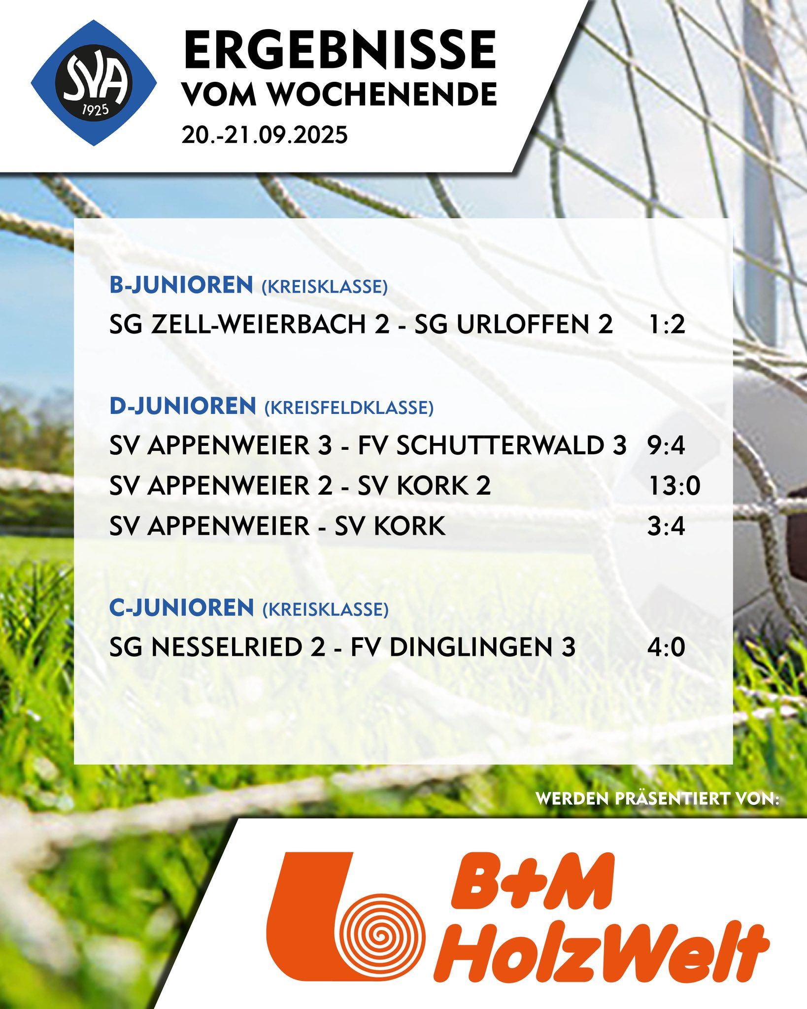 Die Ergebnisse vom Wochenende auf einem Blick. Sie werden präsentiert von: B+M HolzWelt GmbH