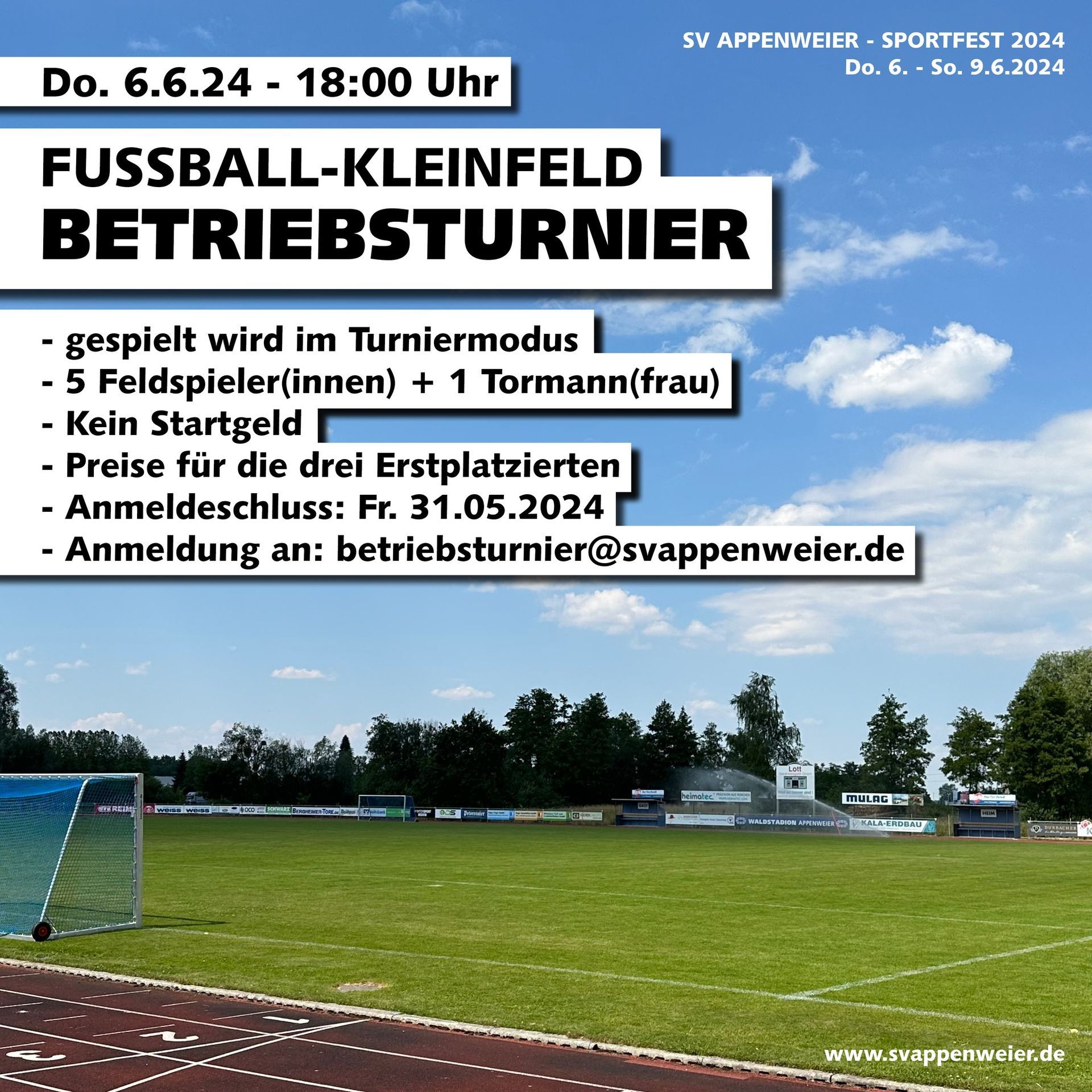 Jetzt anmelden unter betriebsturnier@svappenweier.de Anmeldeschluss ist Freitag, der 31. Mai 2024.