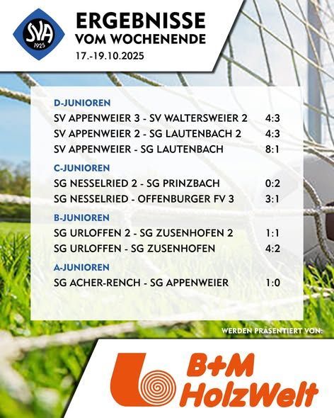 Die Ergebnisse vom Wochenende auf einem Blick. Sie werden präsentiert von: B+M HolzWelt GmbH