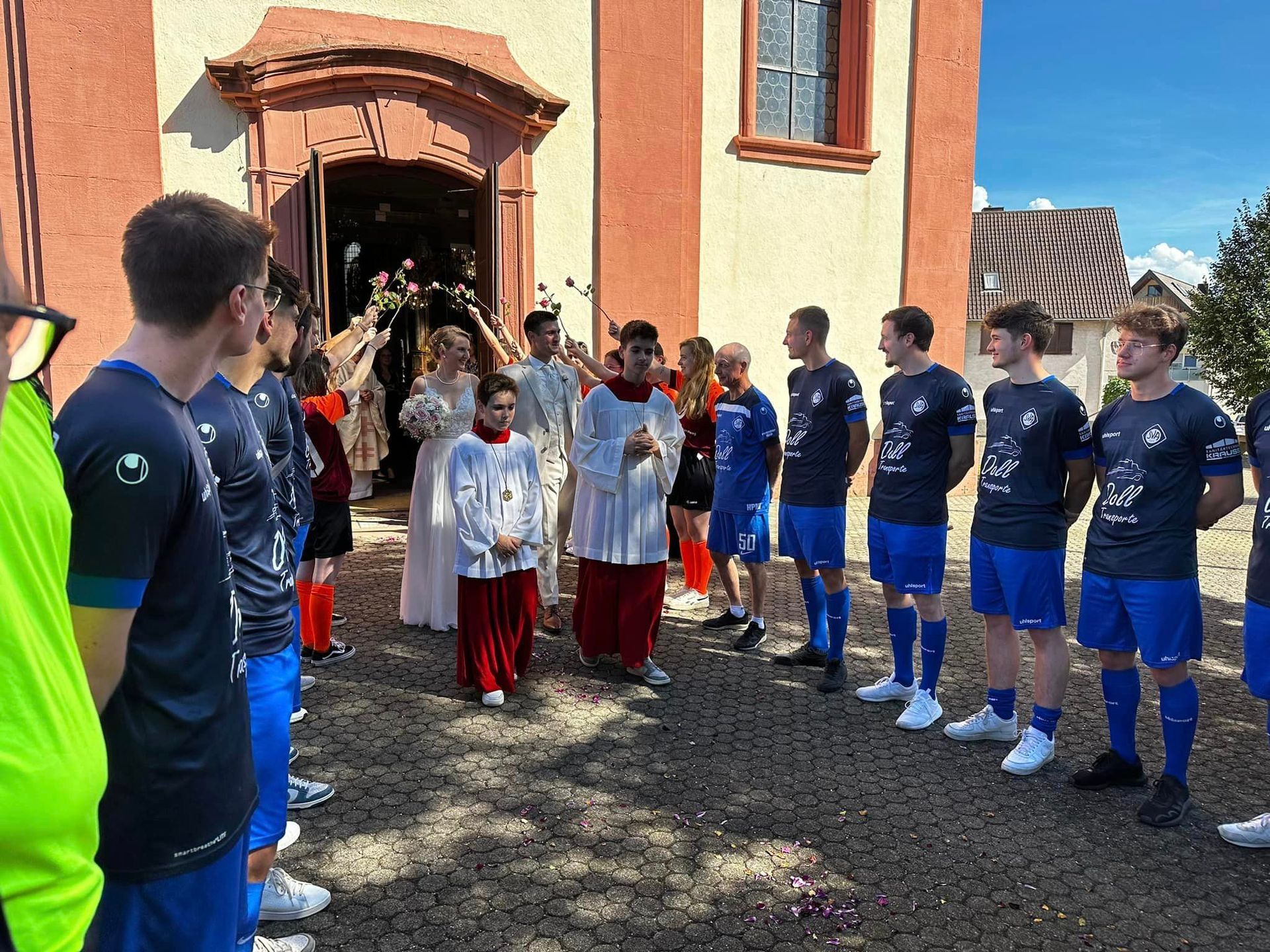 Strahlender Sonnenschein und blauer Himmel, besser hätte das Wetter für den Hochzeitstag von Patrick und Martina nicht sein können. Unser langjähriger Herrenspieler Patrick Sauer gab heute seiner Martina das JA-Wort. Natürlich ließen es die Mannschafts- und Vereinskollegen von Patrick nicht nehmen, dem frisch vermählten Brautpaar Spalier zu stehen und zu gratulieren. Der gesamte SVA gratuliert recht herzlich und wünscht ein unvergesslichen Tag!